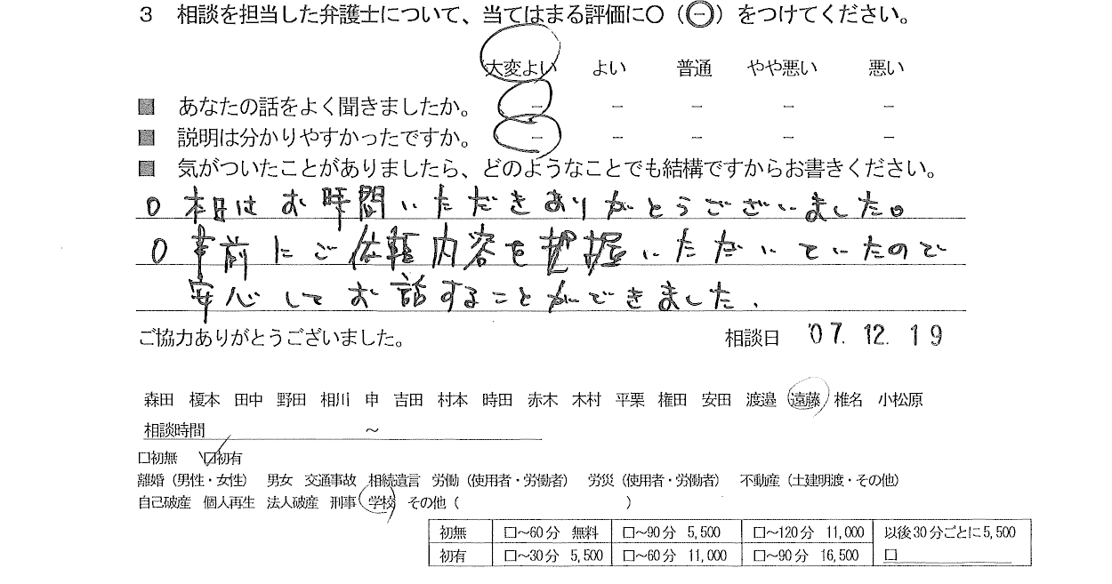 ◯事前にご依頼内容を把握いただいていたので安心してお話することができました。
